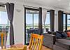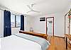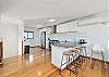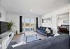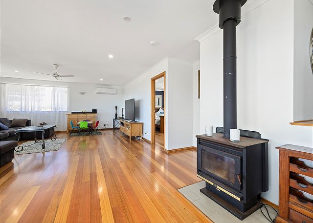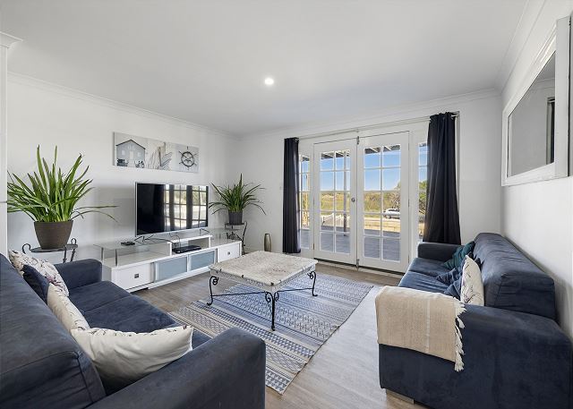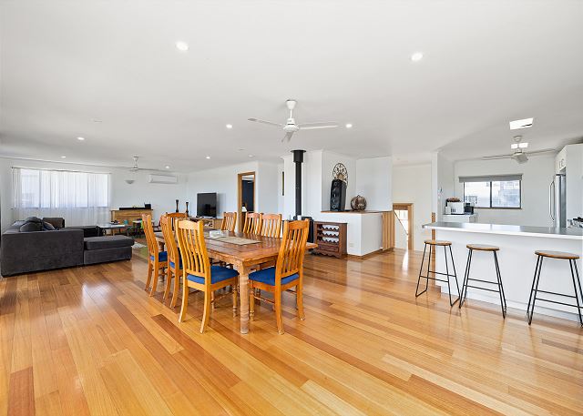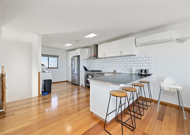 BUT, that’s not all there is to love about this home. Upstairs is bathed in natural light from floor to ceiling windows and sliding doors. A gourmet kitchen equipped with dishwasher and coffee machine (pods provided). An open plan living and dining area with a large table setting to cater for all and a large U-shaped sofa allowing plenty of room to kickback & relax after a long day in the sun.